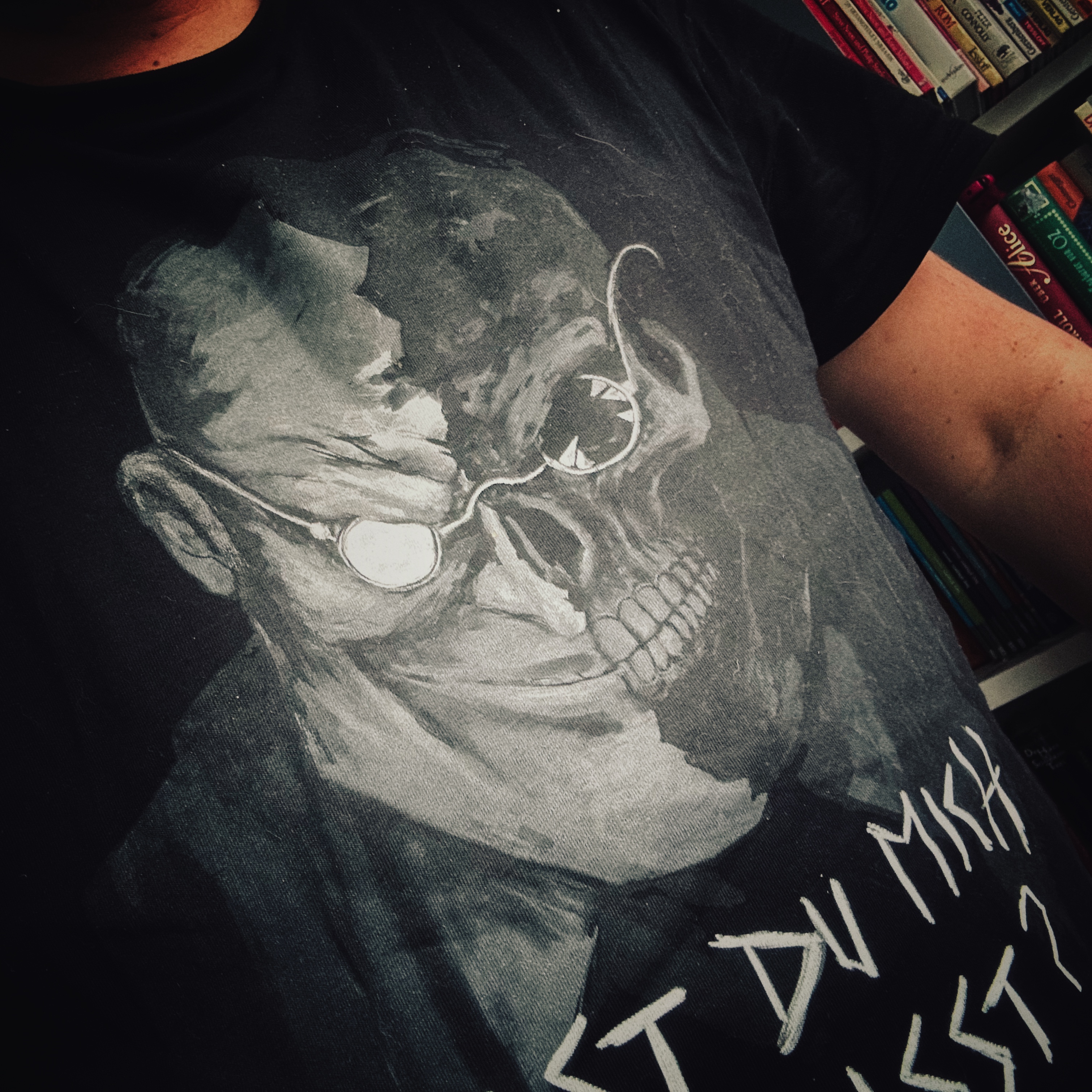 Es handelt sich um ein Unisex-Shirt aus dem Hause Stanley aus 100% Baumwolle und 180 gr Gewicht. Das Shirt ist klassisch schwarz mit sechsfarbigem Aufdruck in Grautönen. Es ist vorderseitig großflächig bedruckt. Das "Schlafende Hunde" Motiv mit Mr. Dron und der Frage "Hasst du mich vermisst?" wurde von JANUS-Urgestein Oliver Schlemmer gestaltet, der u.a. auch schon "Vater" und "Kleine Ängste" bebildert hat.