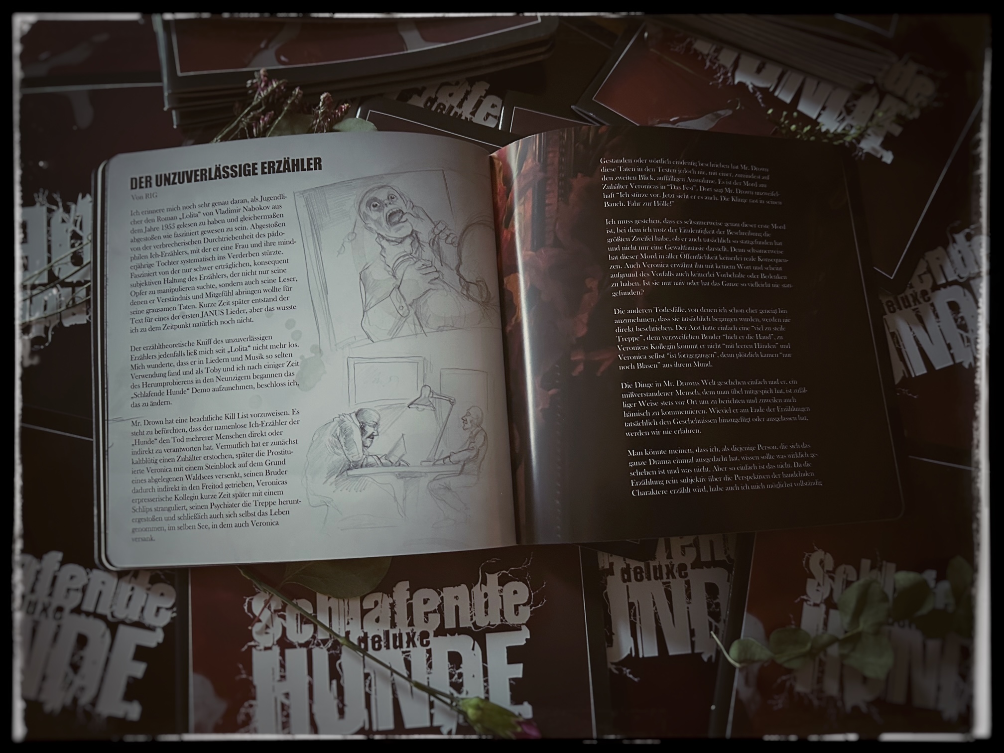 Es handelt sich hier um das 21x21cm große, 40-seitige Programmheft zu den Jahresabschlusskonzerten im November 2025 unter dem Motto "25 Jahre Schlafende Hunde". Das Programmheft wurde von RIG selbst layoutet und enthält zahlreiche Skizzen und Illustrationen von Oliver Schlemmer, dem Schöpfer der Figuren von "Schlafende Hunde", die in den Original-Artworks keine Verwendung mehr fanden. Außerdem gibt es Essays von Oli zur Entstehung der Figur des "Mr.Drown", von Toby zur Produktion des albums und von RIG zu den Hintergründen der Texte. Abgerundet wird das Heft von der Setlist, einem Grußwort und der Vorstellung der Musiker.